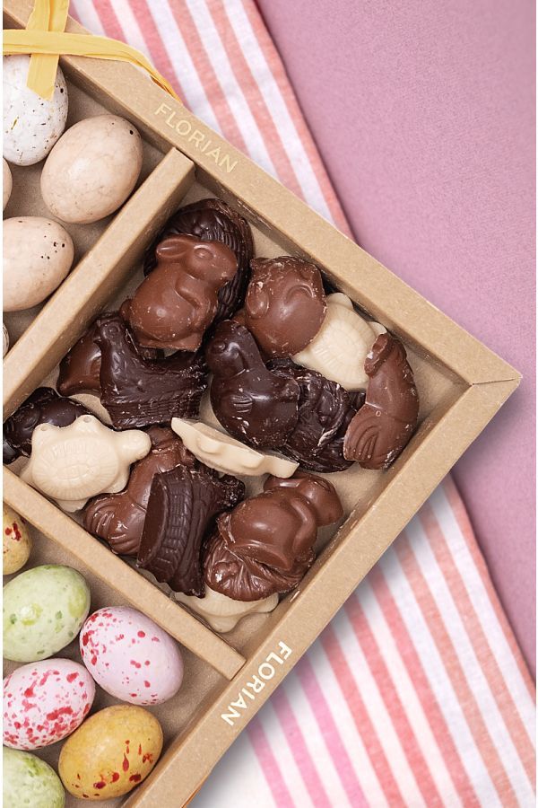 - Mini praline chocolate figurines: no Easter celebration is complete without these adorable and delicious characters.