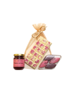 Tablette chocolat noir à la verveine : Pâte de cacao 46.5% ; sucre 40.0% ; beurre de cacao 13.0% ; émulsifiant: lécithine de soja <1% ; arôme naturel de vanille <1%, Feuilles de verveine fraîche, Sucre glace, Sucre, Gomme arabique, Eau, Colorant E141 (chlorophylle).